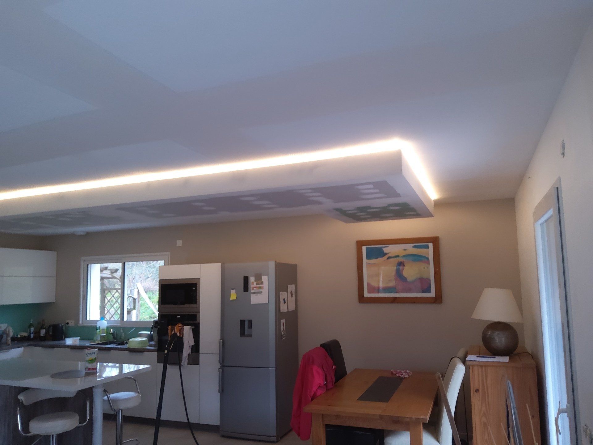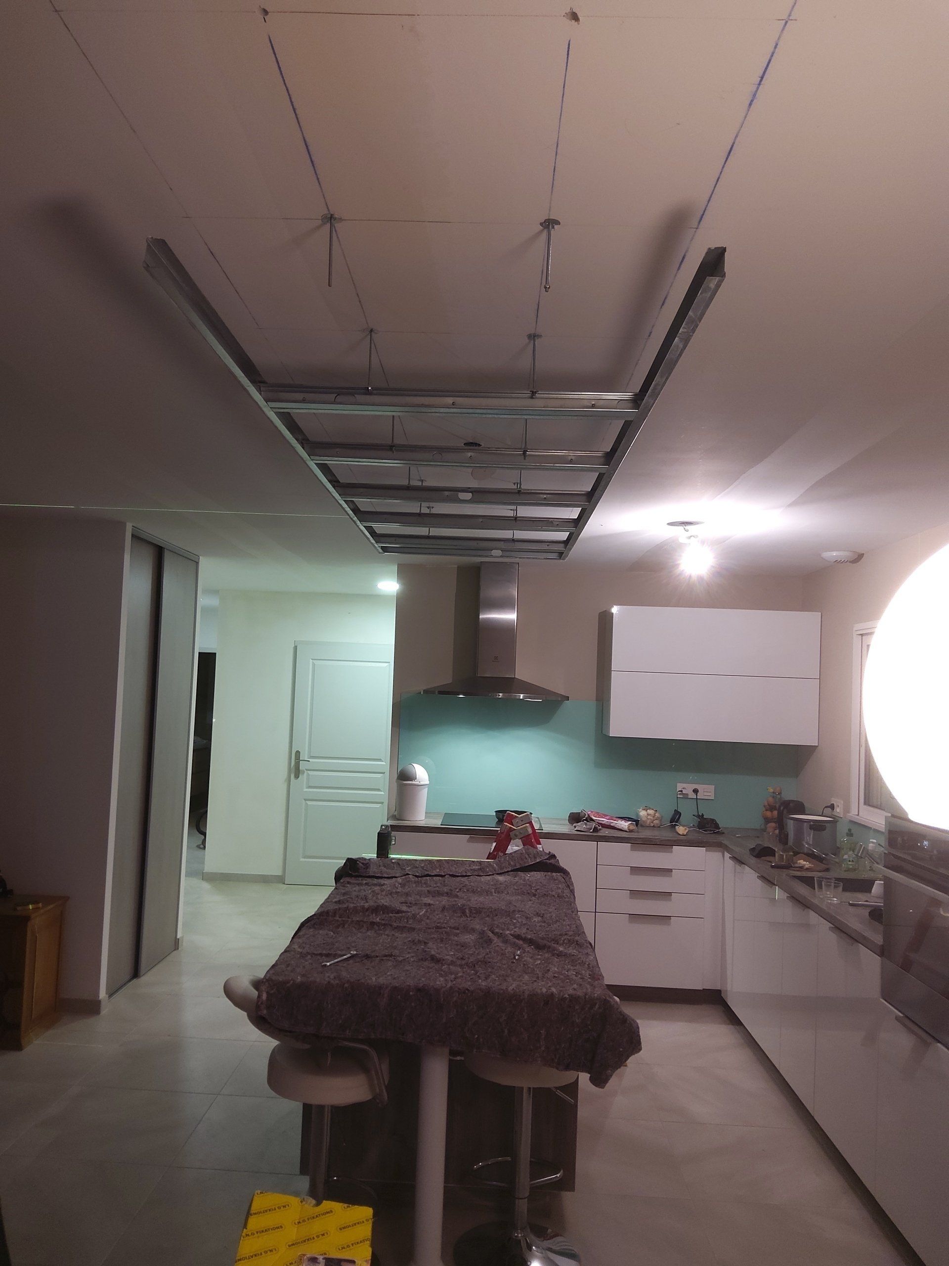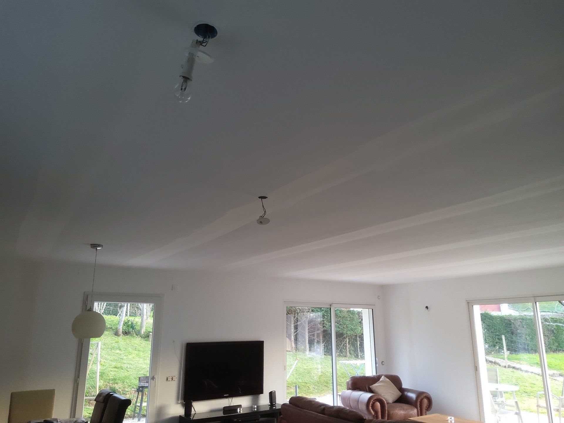 Nous exécutons les plans, schémas de l’architecte, maître d’œuvre, bureau d’études… c’est-à-dire qu’en suivant le plan d’implantation fourni nous montons les cloisons, doublages thermiques et faux plafonds. Nous effectuons également le jointement pour un rendu lisse, homogène, impeccable, il n’y a plus qu’à peindre.